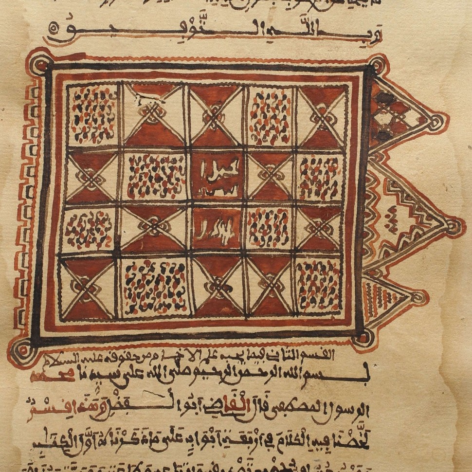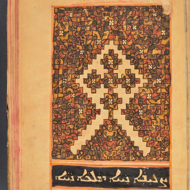 - Islamic writings by ʻAlī ibn Muḥammad al-Sakhāwī: an Arabic grammar book known as the Book of happiness, and a poem entitled Dhāt al-ḥulal wa-mahāt al-kulal (MARI 00046);