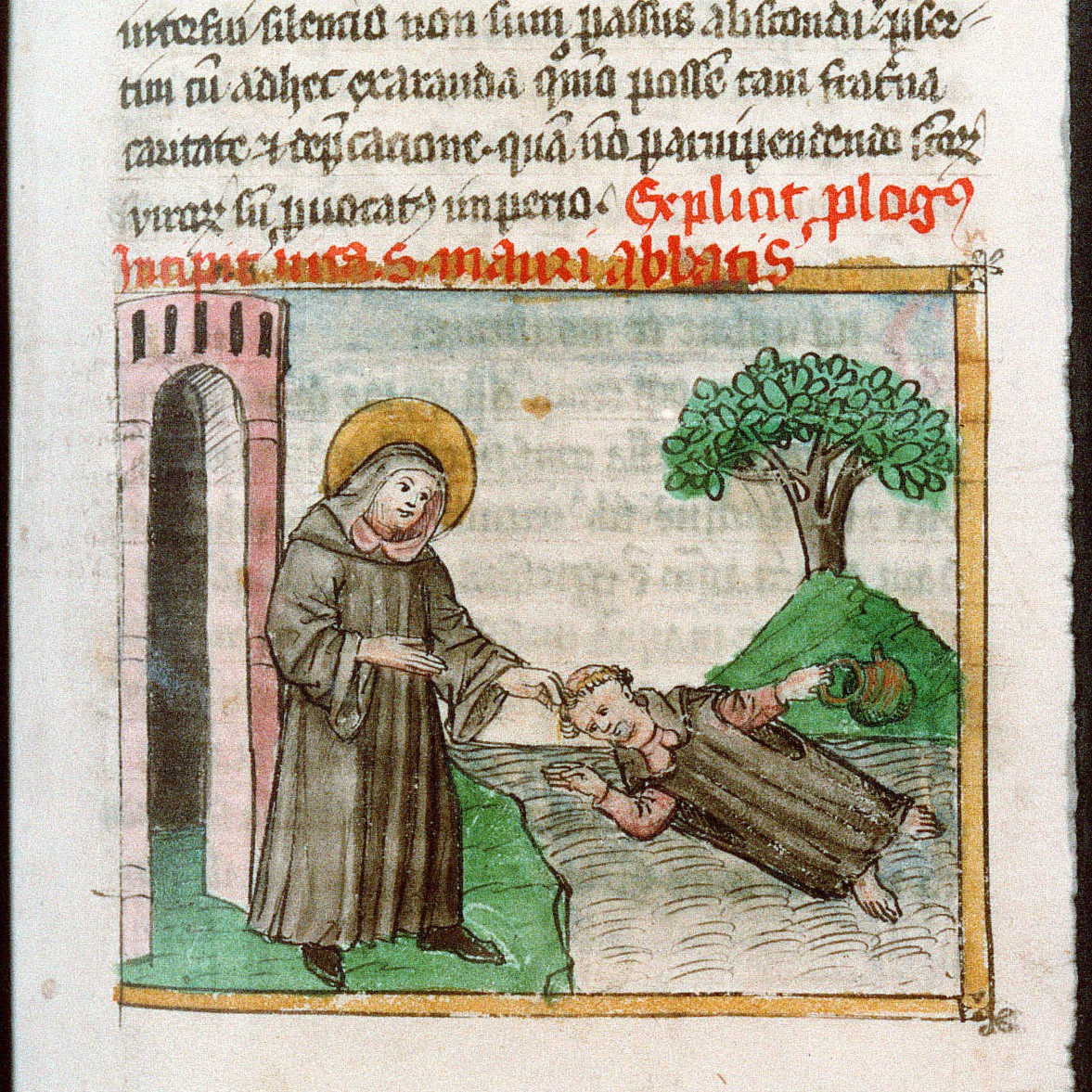 In the 8th century, numerous missionaries came to the German-speaking areas of Europe from England; one of these missionaries was Saint Walburga (approximately 710-779 or 780), a Benedictine nun and abbess of the Monastery of Heidenheim near Eichstätt. About a century after she died, her remains were transferred to Eichstätt, where a house of canonesses took care of them. In the 11th century, Count Liutger of Lechsgmünd and Graisbach converted the house to a Benedictine monastery for women, Benediktinerinnenabtei St. Walburg. Despite the official secularization of the monastery in 1806, the sisters remained faithful to their vows and received permission to continue their communal life. Three decades later, the monastery was renovated and granted permission to accept novices again. In 1852, they even dispatched the first Benedictine sisters to North America, some of whom established a new foundation in Central Minnesota in 1857: Saint Benedict’s Monastery (Saint Joseph, Minnesota). Still active and present on the same Eichstätt site today, Benediktinerinnenabtei St. Walburg houses a collection of manuscripts, now cataloged in Reading Room.